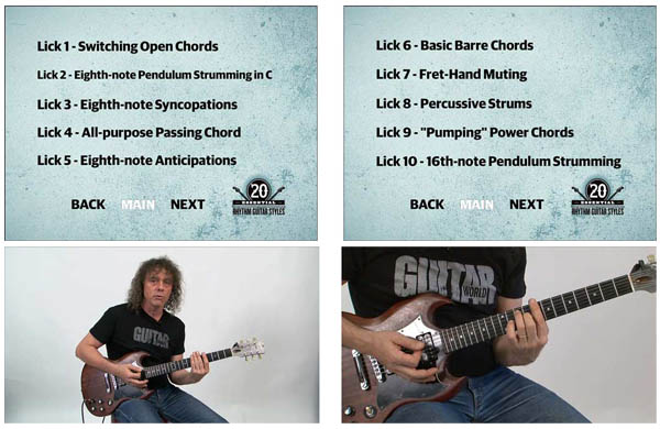 In Guitar World: 20 Essential Rhythm Guitar Styles, master the art of playing rhythm guitar with this complete tutorial. You'll learn all the techniques used by guitarists in rock, country, metal, blues, folk, reggae, and many other styles of music. Through 20 lessons that build upon each other, this lick pack will teach you how to play basic barre chords, open chord embellishments, 'pumping' power chords, chord arpeggiation, eighth