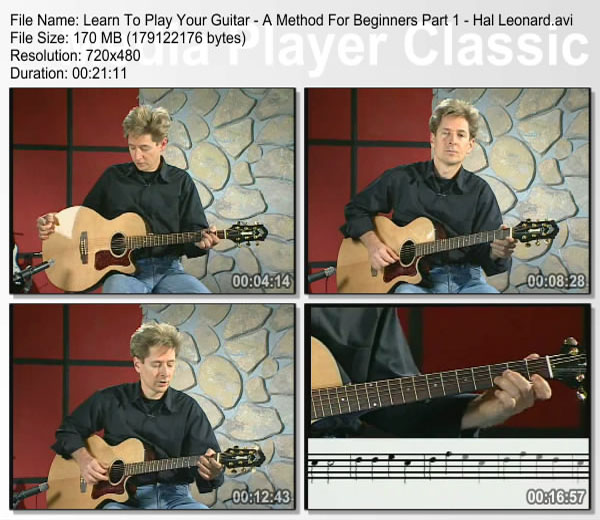 The world-famous Hal Leonard Guitar Method has taught millions of people to play. Now learning will be even easier, thanks to this great new Digital Video Disc! Designed for anyone just learning to play electric or acoustic guitar, it covers: tuning, identifying the parts of the guitar, reading both standard notation and tablature, playing chords, strumming and picking, improvising basic rock solos and lots more. It features great camera angles, helpful on-screen music, guitar diagrams, hand-position close-ups, and