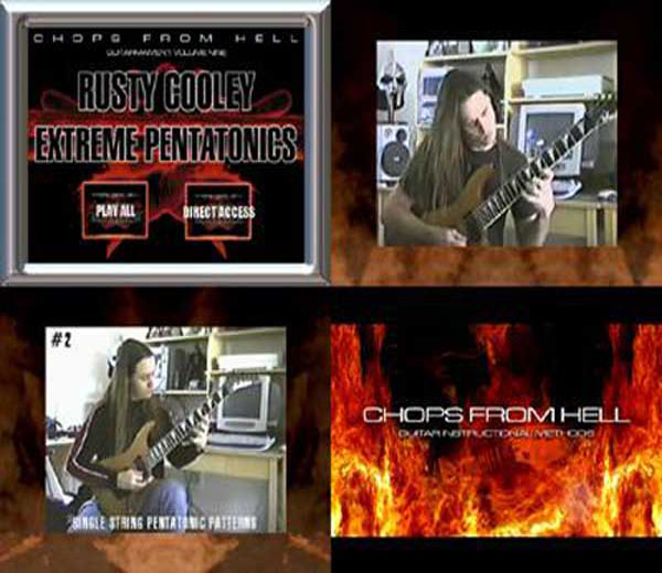 The DVD features the 50 minute "RUSTY COOLEY - EXTREME PENTATONICS" video which includes 159 examples (88 examples from the "6 STRING" section, 41 examples from the "7 STRING CONVERSION" section, and 30 examples from "THE LICKS" section). Either watch the entire 50 minute video or use the "Direct Access" menu to access individual examples.