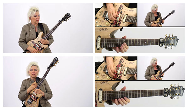 After the performance examples, Jennifer breaks the solos down technique-by-technique, part-by-part. Using Jennifer’s breakdowns, along with the supplied tab and notation, you’ll learn the solos as performed and can play them along with Jennifer at tempo. Next step is playing the solos by yourself over the supplied rhythm tracks. The final step, and the mission of this learning experience, is to integrate those concepts and techniques into your own solos and improvisations.