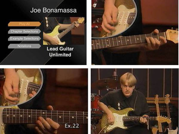 Music examples included in PDF format on the DVD disc. More than 60 exercises are transcribed, matching the example numbers on the screen. All right- and left-hand techniques are shown close-up, with special split-screen effects so you can observe and learn all the subtleties of the top players.