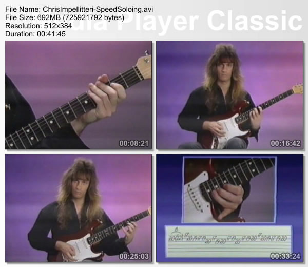 With up-close camera shots and on-screen tablature, Chris analyses the improvisational tools critical for composing rock leads. Covers: speed, conception, speed picking, high speed repetition, how to use speed, right-left hand synchronization, 3-note-per- string sequences, alternate picking, arpeggios and more.