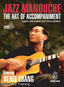 In “Jazz Manouche The Art of Accompaniment”, this rhythmic foundation is disassembled, piece-by-piece, by instructor Denis Chang. With the aid of three students, Denis clearly illustrates how to produce, not just “acceptable” but “authentic” Manouche rhythm. Denis’ teaching methods follow the traditional Manouche approach of oral training. Reliance on theory and printed instruction is minutesimized as the student