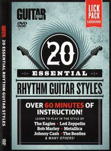 In Guitar World: 20 Essential Rhythm Guitar Styles, master the art of playing rhythm guitar with this complete tutorial. You'll learn all the techniques used by guitarists in rock, country, metal, blues, folk, reggae, and many other styles of music. Through 20 lessons that build upon each other, this lick pack will teach you how to play basic barre chords, open chord embellishments, 'pumping' power chords, chord arpeggiation, eighth