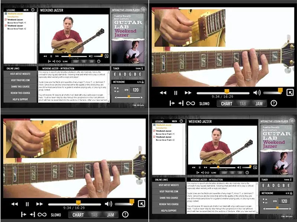 You will receive 16 lessons all of which will deal with a typical bossa nova jam track. You'll be taken step by step through this progression in four bar phrases which will then be assembled into the sections of the tune. After you have learned how to play the entire tune with guide tones, you will then learn how to add the 5, 9, and 6. This will give you many options for extending the harmony which can be applied to any progression.