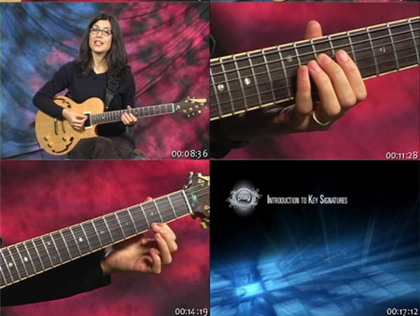 PLAY: Jazz Guitar 2, arpeggios, comping, soloing over a blues progression, fingerstyle playing, and more.