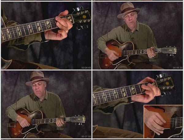 Then he replays it slower, on a split screen with close-ups of both hands. Best of all, you can read all six arrangements (tablature, music and chord grids) in the booklet that comes with this dvd. Chord soloing (playing the melody and chords at the same time) is a very complete and satisfying guitar style. This lesson will get you playing some of the classiest jazz tunes ever written.